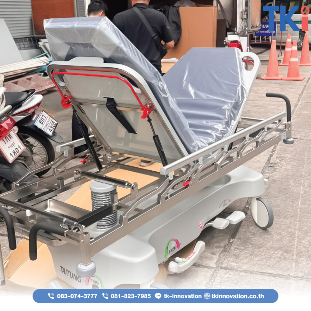 “Hydraulic Stretcher” ถูกออกแบบมาเพื่อช่วยให้ผู้ดูแลสามารถปรับระดับและตำแหน่งของรถเข็นให้สอดคล้องกับสรีระและความต้องการเฉพาะของผู้ใช้งานได้อย่างสะดวกและปลอดภัย โดยไม่จำเป็นต้องออกแรงมากในการยกหรือเปลี่ยนท่าทาง ช่วยลดภาระของผู้ดูแลและลดความเสี่ยงต่อการเกิดอุบัติเหตุหรือบาดเจ็บของผู้ใช้งาน พร้อมเพิ่มประสิทธิภาพในการเคลื่อนย้าย ดูแล หรือให้บริการทางการแพทย์ในสถานการณ์ที่ต้องการความรวดเร็ว แม่นยำ และปลอดภัยสูง”