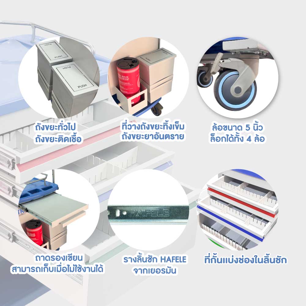 - ที่วางถังขยะทิ้งเข็มจํานวน 1 ช่อง